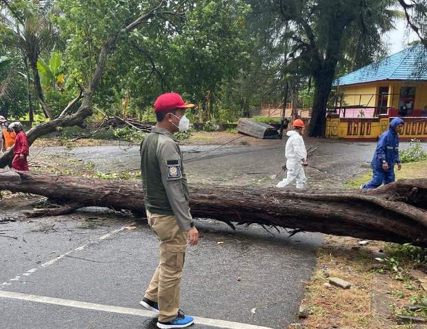 PARIAMAN, Siberindo.co – Gerak cepat, Walikota Pariaman Genius Umar tinjau langsung evakuasi pohon tumbang akibat hujan deras disertai angin kencang yang melanda Kota Pariaman, di Pantai Cermin, Kelurahan Lohong, Kecamatan Pariaman Tengah, Kamis pagi (29/7/2021). Genius Umar yang didampingi Sekretaris Daerah (Sekda) Kota Pariaman, Yota Balad, meninjau langsung proses evakuasi pohon tumbang ini yang ditangani oleh BPBD Kota Pariaman.