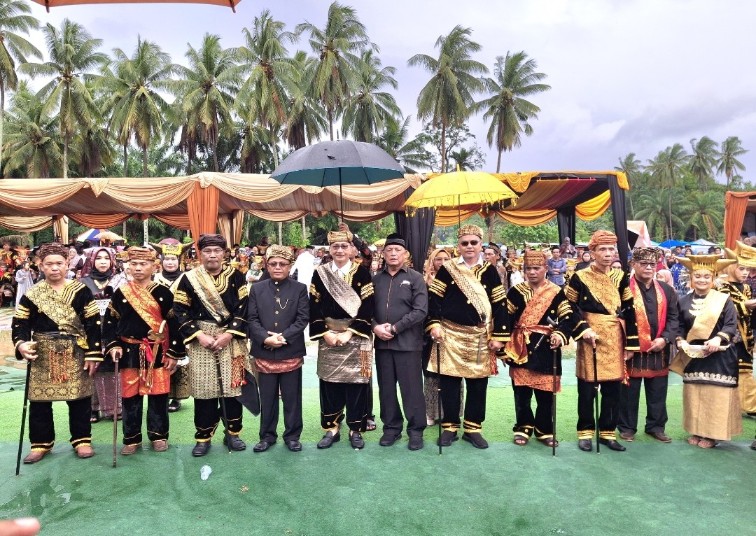 Bupati Pesisir Selatan Hendrajoni Dt. Bando Basau, Ketua LKAAM Syafrizal Ucok Dt. Nan Batuah, Raja Adat Rahma Dianto Dt. Rajo Bagindo Sati bersama perwakilan panghulu yang dilewakan
