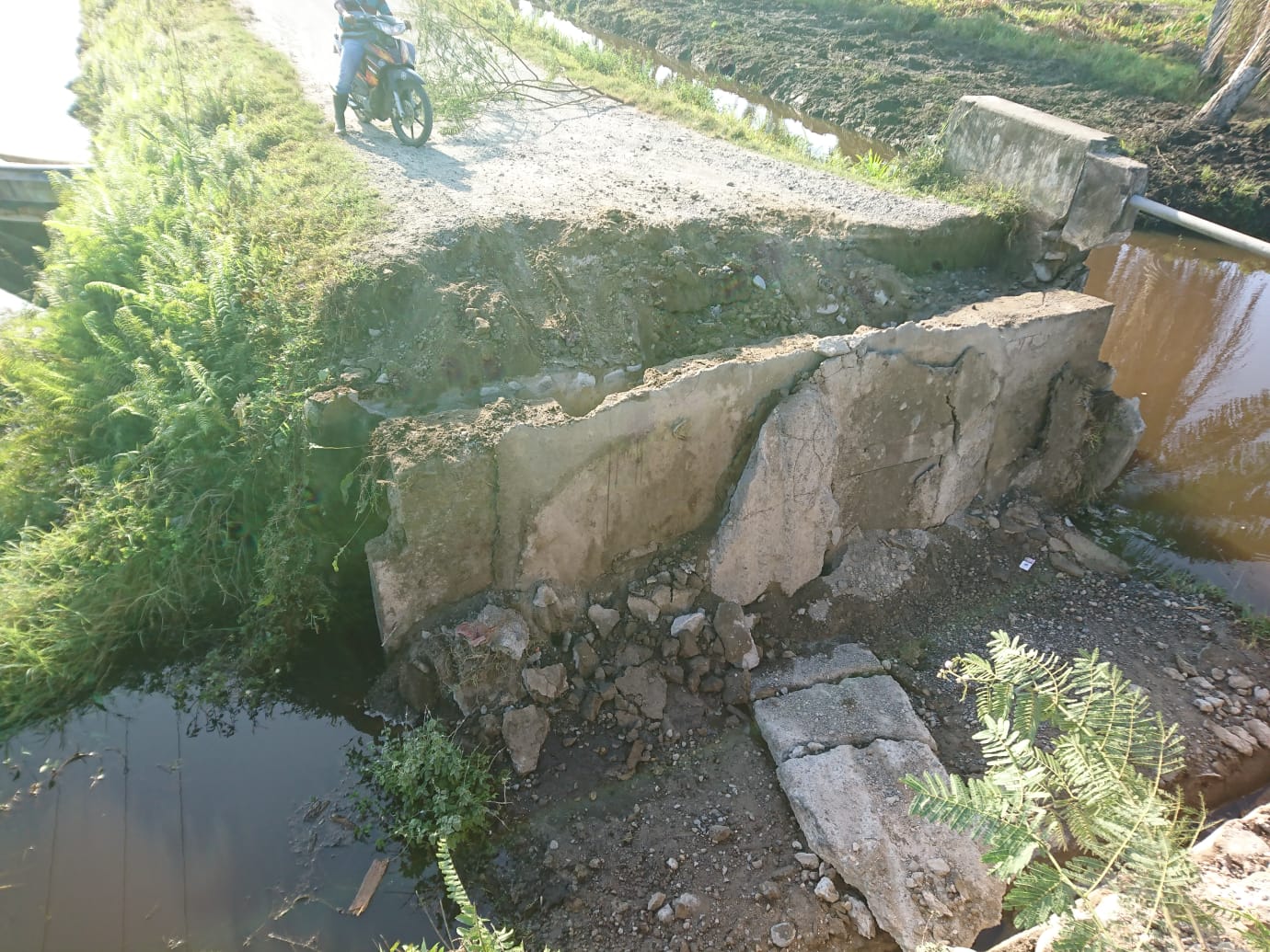 Dampak ambruknya jembatan itu, membuat akses lalulintas masyarakat terputus, bahkan warga harus mengambil jalan memutar kita keluar dari areal perkebunan itu.