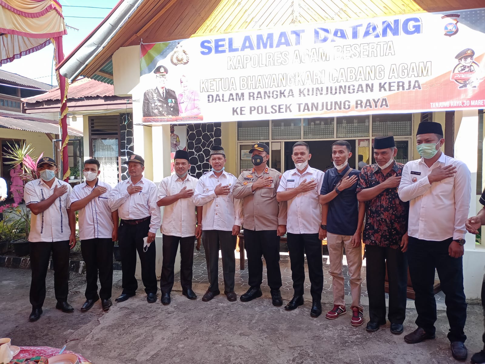 Kunjungan kerja kapolres ke Polsek Tanjung Raya turut dihadiri seluruh PJU Polres Agam, Kapolsek AKP Yudi Partanto, Camat Handria Asmi, forkopimca, walinagari, dan tokoh masyarakat se- Kecamatan Tanjung Raya. (Bryan/KABA12.com)