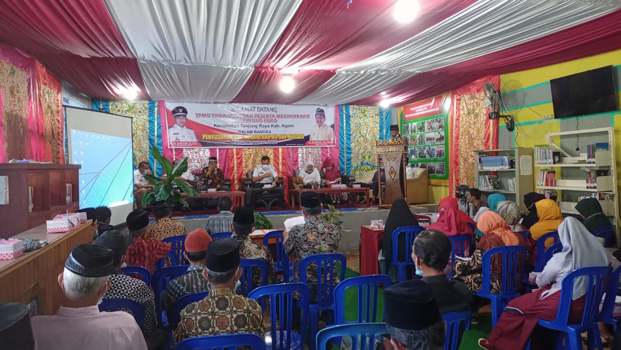 Duo Koto, siberindo — Pemerintah Nagari Duo Koto, Kecamatan Tanjung Raya, Kabupaten Agam menggelar musyawarah nagari (Musna) dalam rangka penyusunan rencana kerja pemerintah (RKP) tahun anggaran 2022, Rabu (30/6).