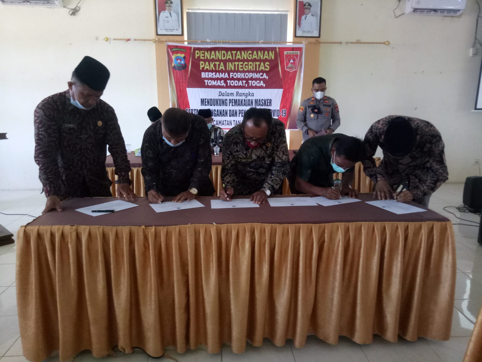 Fakta integritas yang ditandatangani bersama itu untuk memaksimalkan penerapan disiplin protokol kesehatan pada masyarakat, menyusul peningkatan kasus terkonfirmasi Covid-19 yang semakin tinggi beberapa waktu belakangan.