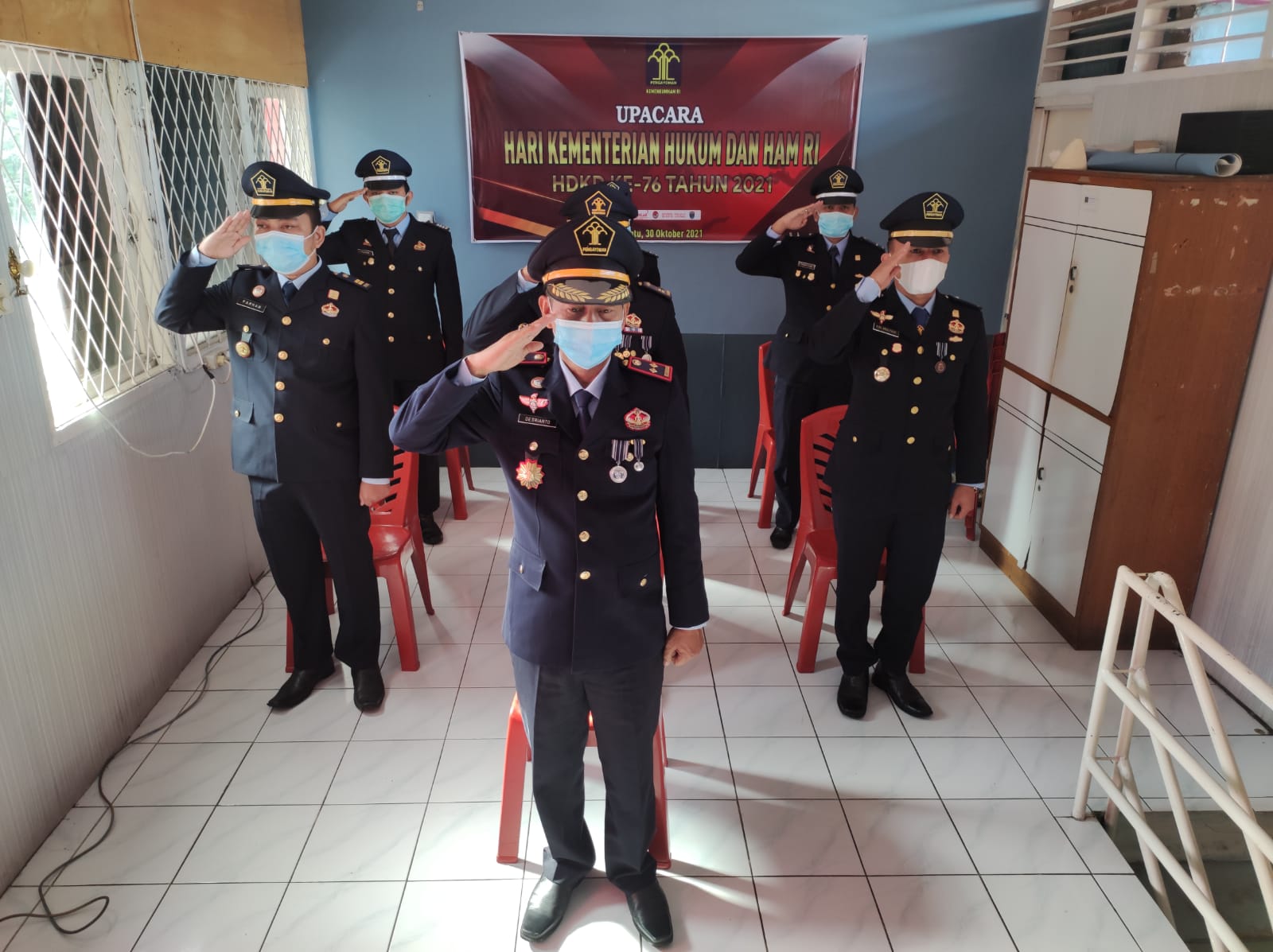 Maninjau, siberindo.co — Jajaran pegawai Rumah Tahanan Negara (Rutan) Kelas IIB Maninjau, Kecamatan Tanjung Raya, Kabupaten Agam mengikuti upacara puncak peringatan Hari Dharma Karya Dhika (HDKD) tahun 2021 secara virtual di rutan setempat, Sabtu (30/10).