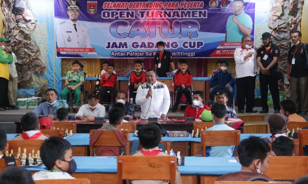 Bukittinggi, siberindo.co — Komunitas pecinta olah raga catur bersama Percasi Bukittinggi, laksanakan pertandingan catur antar pelajar se Kota Bukittinggi. Event catur Jam Gadang Cup yang diinisiasi Anggota DPRD, Dedi Fatria itu, dilaksanakan dua hari, 27 hingga 28 November 2021, di SMPN 4 Bukittinggi.