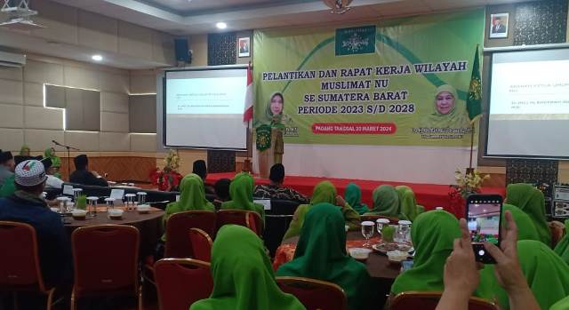 Demikian diungkapkan Ketua Umum Pimpinan Pusat Muslimat NU Khofifah Indar Parawansa pada pelantikan Muslimat NU Sumatera Barat dan Muslimat NU se-Sumatera Barat, Sabtu (30/3/2024) di aula hotel Univesitas Negeri Padang (UNP). Pelantikan dihadiri A’wan PBNU Prof. Asasriwarni, Wakil Bendahara PBNU Azwandi Rahman, Ketua PWNU Sumbar Prof.. Ganefri, Ph.D, Katib PWNU Joben, Sekretaris PWNU Sumbar Tan Gusli, Ketua PW Muslimat NU Riska Eka Putri, pengurus badan otonom di lingkungan PWNU Sumbar, Pengurus PC Muslimat NU se-Sumatera Barat yang dilantik dan pengurus PWNU Sumbar lainnya.
