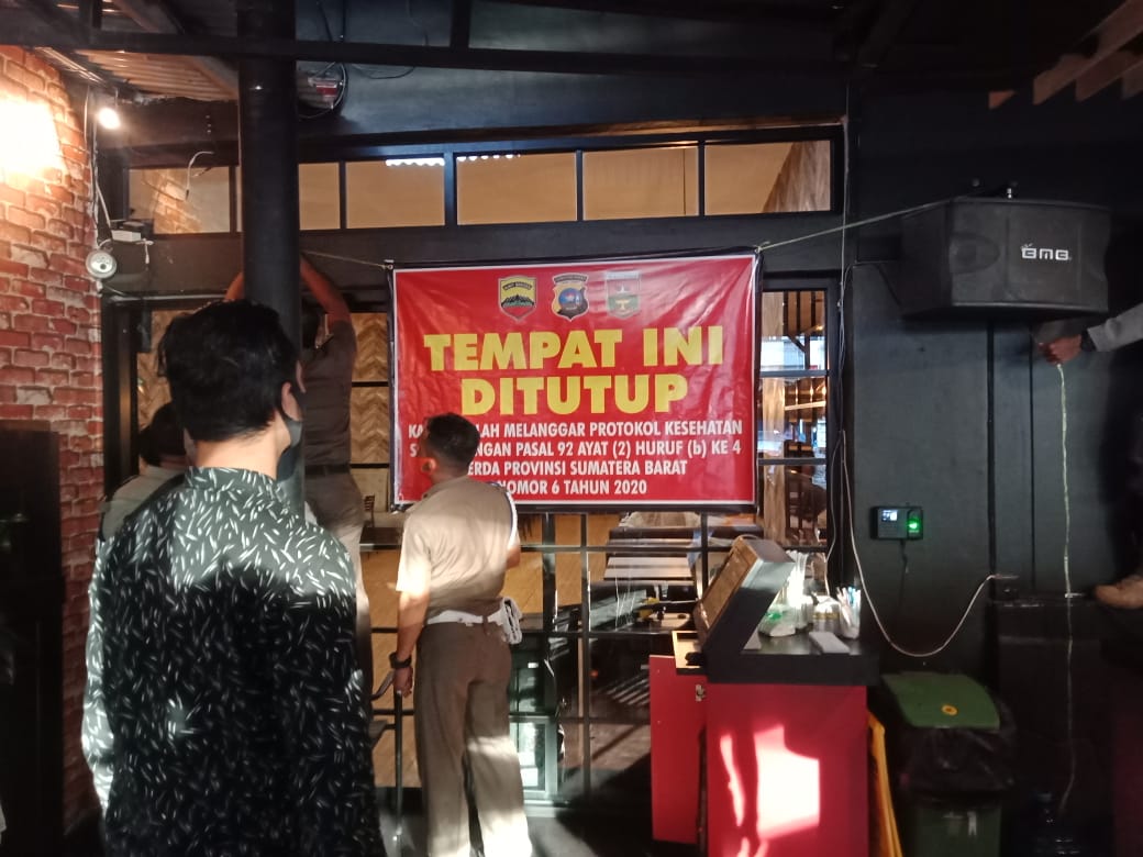 Penyegelan dilakukan karena telah melanggar protokol kesehatan sesuai dengan pasal 92 ayat (2) huruf (b) ke 4 Perda Provinsi Sumatera Barat Nomor 6 Tahun 2020.