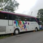 Maninjau, kaba12.com — Bus pariwisata yang tersangkut di jalur Kelok 44 persisnya di tikungan Kelok 14, Nagari Maninjau, Kecamatan Tanjung Raya, Kabupaten