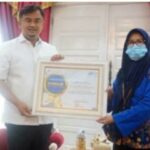 Bupati Sutan Riska Tuanku Kerajaan menerima Piagam Statistik dari Kepala BPS Hilda
