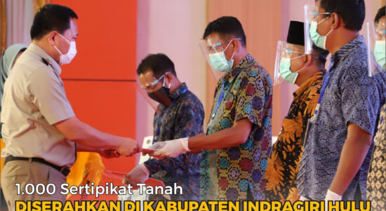 Indragiri Hulu – Kementerian Agraria dan Tata Ruang/Badan Pertanahan Nasional (ATR/BPN) melalui Kantor Pertanahan Kabupaten Indragiri Hulu menyerahkan 1.000 sertipikat tanah yang
