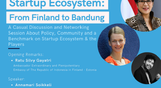 Helsinki, Finlandia – KBRI Helsinki bekerja sama dengan Startup Bandung untuk selenggarakan seminar daring “Exploring the Ecosystem: From Finland to Bandung” (10/02/2021) menghadirkan